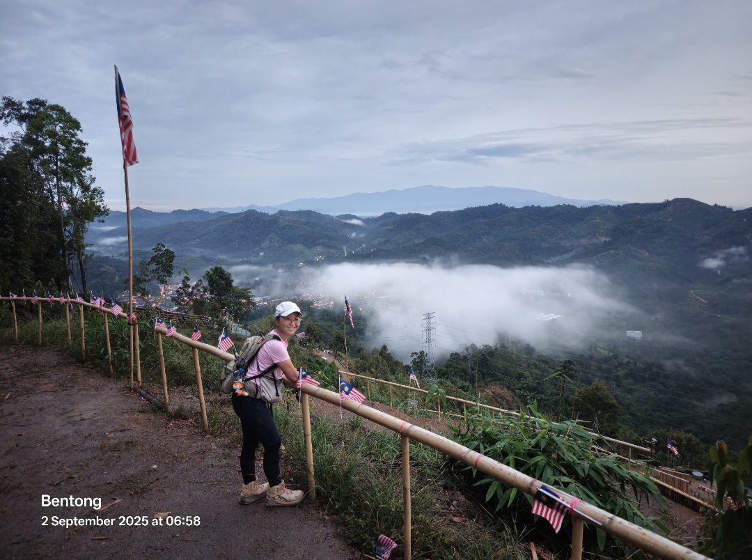 There are 2 trails, and we did “get lost” for a while in the dark. It’s a nice little hike, and we had lots of time at the summit to enjoy the lights before sun breaks in. My strava records 158m elevation gain and 2.16km. Nice morning exercise before we get on exploring Bentong town!